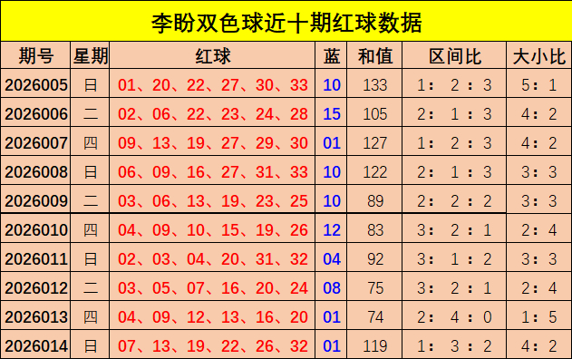 李盼本期双色球推荐: