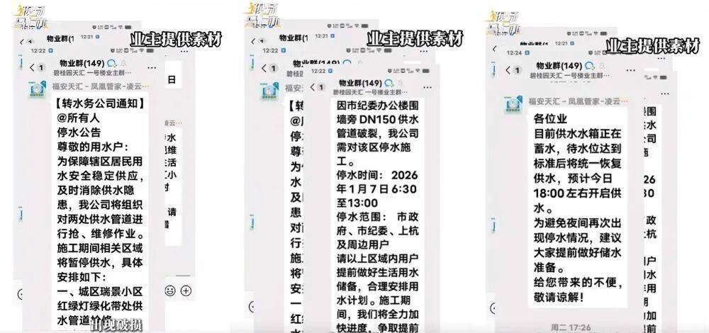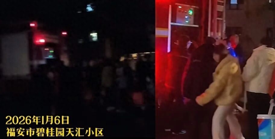 福安 市 碧桂园天汇 小区住户陈先生 给《现场》记者 提供 了 一段 2026年1月6日的 视频 。 在 视频 中,小区 住户在夜里排队等待消防车给水。