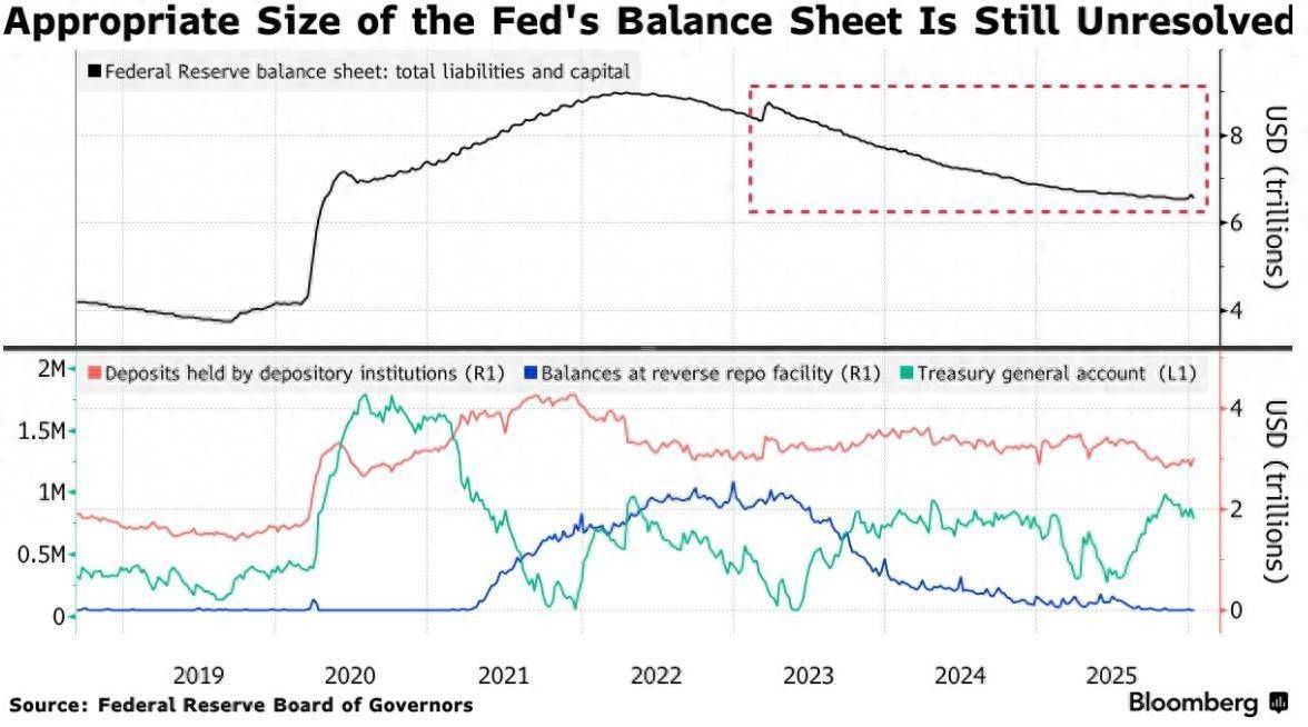对于可以将银行准备金降至多低水平以使资产负债表回归危机前水平,央行官员们似乎存在分歧。美联储负责监管的副主席米歇尔·鲍曼曾主张,美联储应寻求实现尽可能小的资产负债表规模。